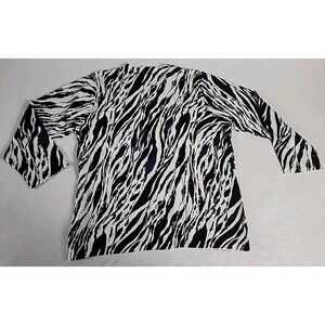 Charter Club Cardigan Sweater Sz L Black White Zebra Print Button Up Round Neck
