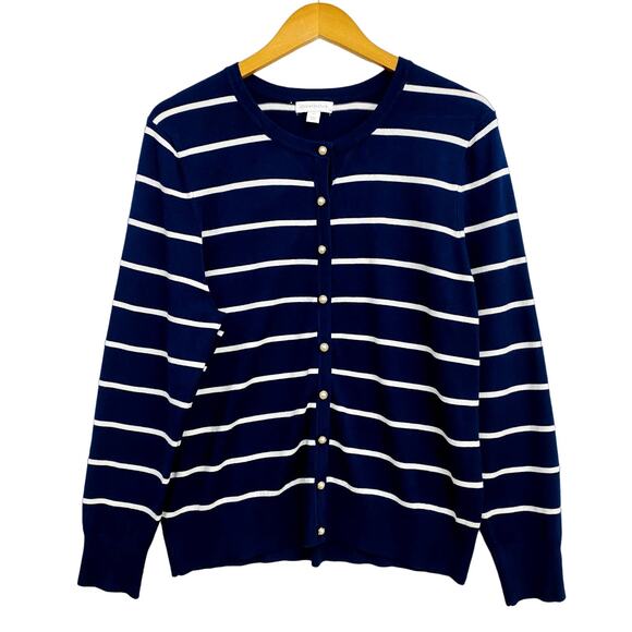 Charter Club Cardigan Womens Size XL Blue Striped Faux Pearl Button Long Sleeve