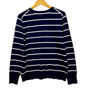 In great preowned condition. Some wear throughout. Actual item for sale photographed, please see photos for details, flaws and measurements. Charter Club Cardigan Womens Size XL Blue Striped Faux Pearl Button Long Sleeve