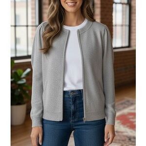 Charter Club Cashmere Full Zip Cardigan size S Zip Up Puff Sleeve Gray