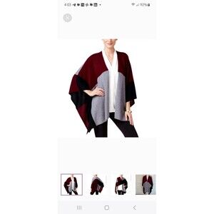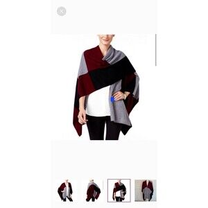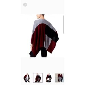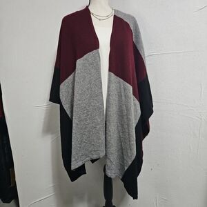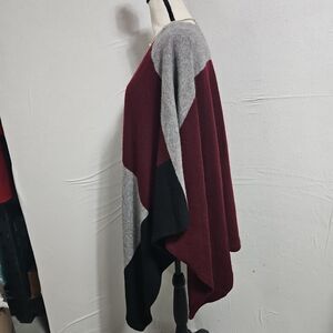 Charter Club Cashmere Luxury One Size Poncho Sweater Gray/Burgundy/Black