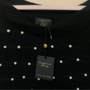 Charter Club Cashmere Pearl Embellished One-Shoulder Sweater Size Small NWT New
