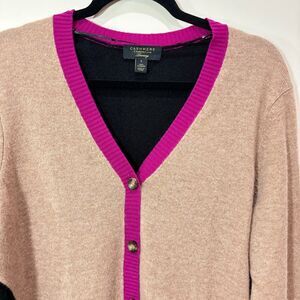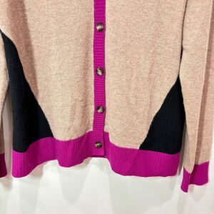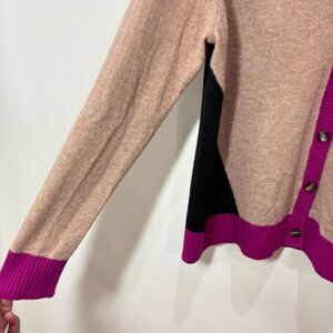 Charter Club Cashmere Sweater Cardigan Purple Tan Black Colorblock Women XL Luxe