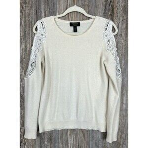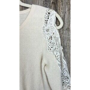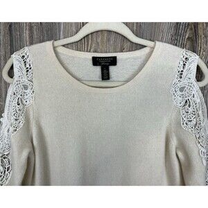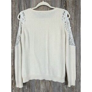 Charter Club Cashmere Sweater Size L Beige Crochet Cold Shoulder Soft Fuzzy Chic