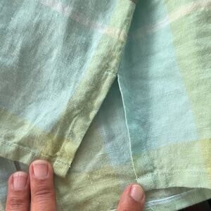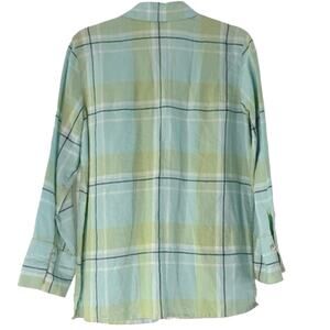 Charter Club Casual Plaid 100% Linen Button Down Tunic Top Size 8 Collared