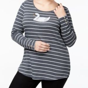 Charter Club Women's Plus Charcoal Swan Embellished Top