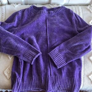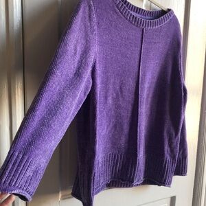 Charter Club Chenille Purple Crew Neck Long Sleeve Sweater Top Size XL