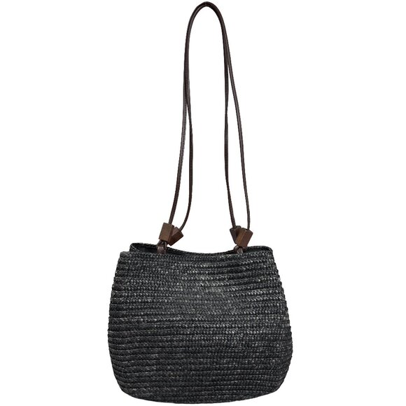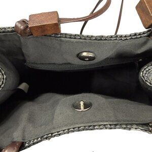 Charter Club Classics Woven Straw Shoulder Bag Black Wooden Bead Handles accents