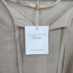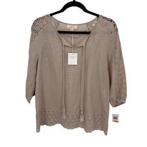 Charter Club Coastal Grandmother Top Womens PS Tan Luxury Linen Crochet Trim NEW