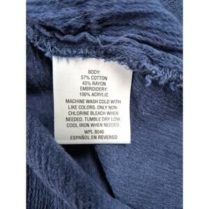 Charter Club Cotton Blend Gauzy Top Navy Blue White Embroidered Flowers Sz XL