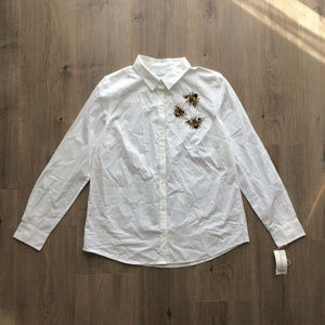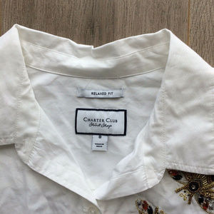 Three charming little bees are beautifully embellished into the front of this crisp cotton shirt from Charter Club.