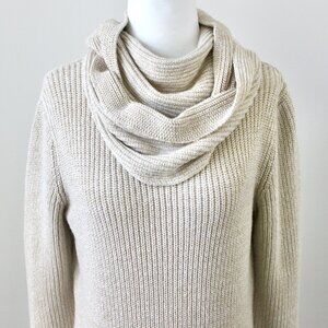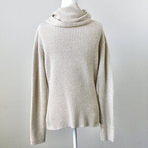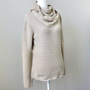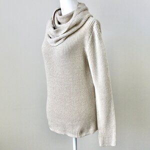 Charter Club Cream Metallic Cowl Neck Long-Sleeve Winter Fall Sweater Medium