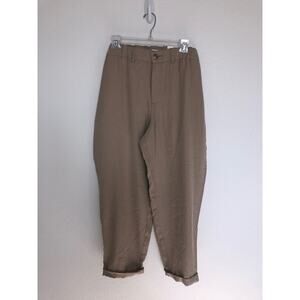 These versatile pants are perfect for transitioning to the warmer months. They feature a roll tab cuff that can give these pants a cropped look. They feature a stretch waistband for added comfort. Zipper and button closure. The color is Sedona Dust which is a tan shade. There are a couple of spots that should wash out please see pictures (5,6). New with tags.