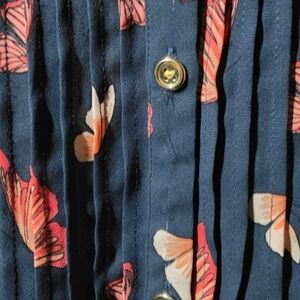 Charter Club Dark Blue Blouse with Pink Floral Pattern 2X