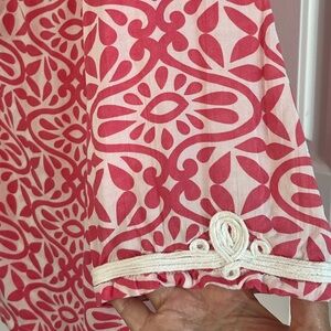 Charter Club Iconic Print Embroidered Tunic Glamour Pink White Blouse