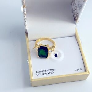 A single clear crystal sits at each side of the colored emerald-cut feature on this fantastic ring by Charter Club.
