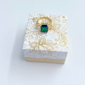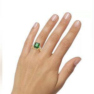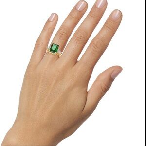 A single clear crystal sits at each side of the colored emerald-cut feature on this fantastic ring by Charter Club.