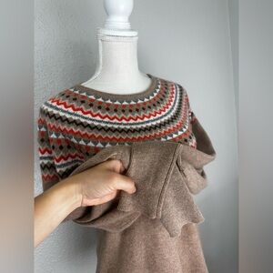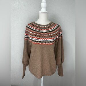 Charter Club Fair Isle Balloon-Sleeve Cashmere Sweater Heather Carmel Medium