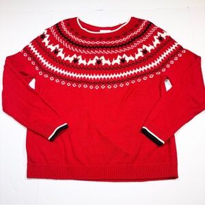 Charter Club Fair Isle Scottie Dog Sweater Red Crew Neck Womens XL Holiday