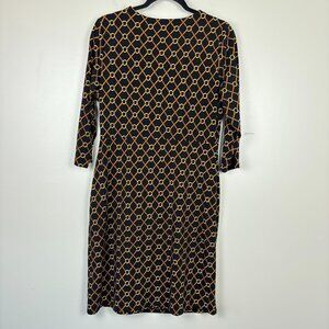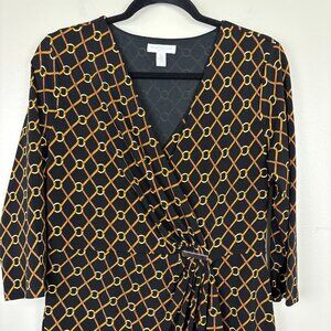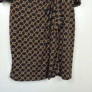 Charter Club Faux Wrap Midi Dress Womens Petite Large Black Gold Geometric Chain