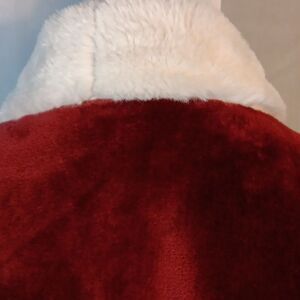 This one size fits all maroon and white open front wrap with pockets is perfect for those cozy nights on the couch.