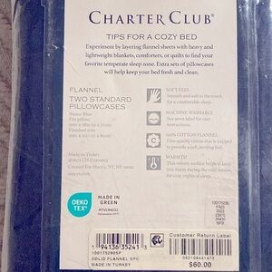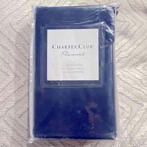 Charter Club Flannel 2 Standard Pillowcases 100% Cotton Navy Blue