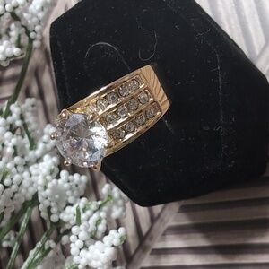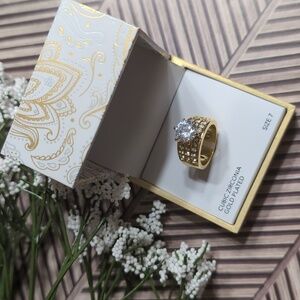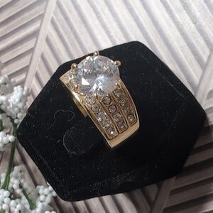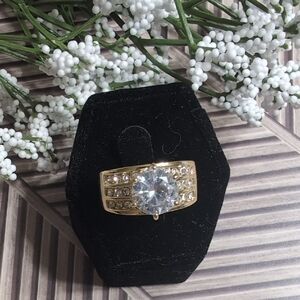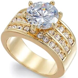 Charter Club Gold Plated Cubic Zirconia 3 Row Ring Large Crystal Size 7