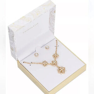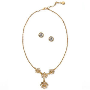 Charter Club Gold-Tone Crystal Flower Lariat Necklace & Stud Earrings Set NWT
