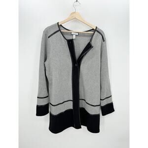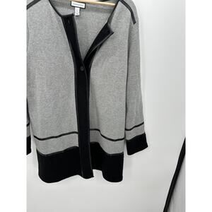 Charter Club Gray Black Button Front Cardigan Sweater Long Line Cotton Wool Sz L
