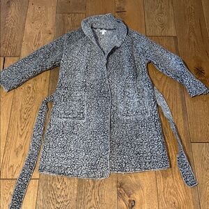 Soft and textured robe with a cozy feel. Features a tie belt and front pockets. Perfect for lounging.