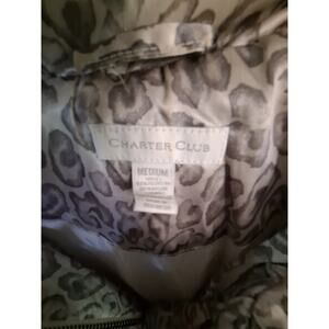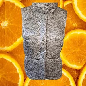 Charter Club Gray and White Leopard Print Puffer Vest Size Medium