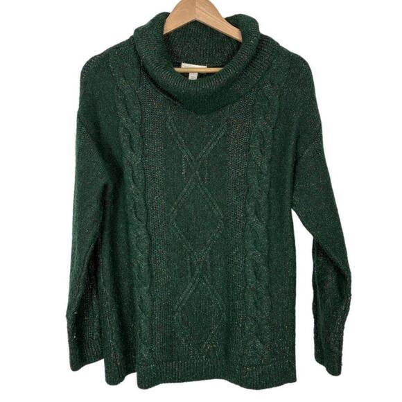 Charter Club Green Metallic Glitter Cable Knit Sweater Size: L