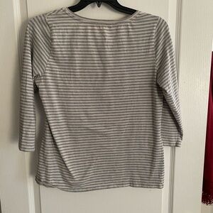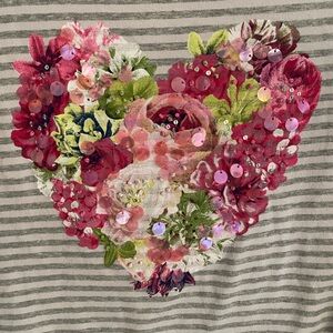 Happy heart Charter Club tee in soft gray stripe. Glitter heart to center chest. 3/4 length sleeves. Excellent condition, worn a time or two.