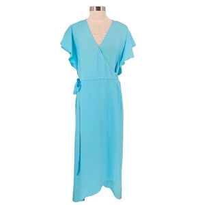 Charter Club HiLo Midi Wrap Dress Pool Blue Short Sleeve V Neck Sundress