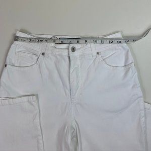 Comfortable high waisted white straight leg jeans. Rise is 11 in. See photos for other measurements.