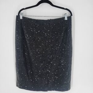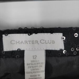Charter Club Holiday SHIMMER Sequins Skirt Sz 12 BLACK Midi Party Elegant Formal