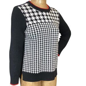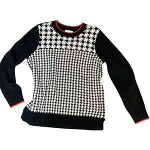 Charter Club Houndstooth Sweater Sz PM Black White Red #319C