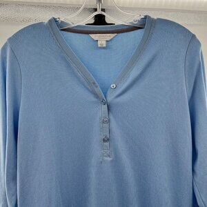 Charter Club Intimates Henley Sleep Shirt Long Sleeve Blue Size Small