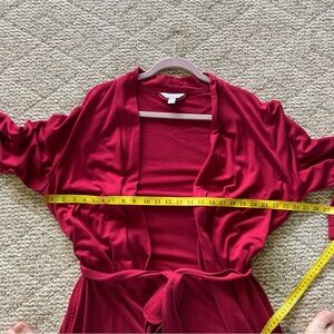 Charter Club Intimates red tie waist robe. Has pockets! Significant fuzzing and pilling all over. Size Large