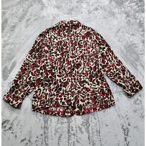 Charter Club Jacket Womens 1X Brown Pink Animal Print Stretch Corduroy Preppy Casual