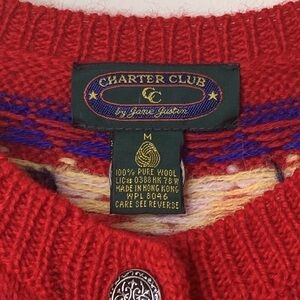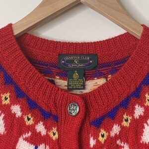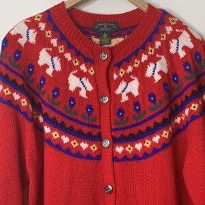 Charter Club Jane Justin Vintage 100% Wool Scottie Dog Floral Red Knit 7 Button Cardigan in size Medium