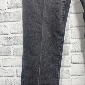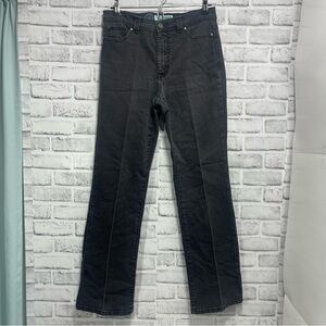 Black, 5 pockets, button zipper closure, belt loops, back pockets with sequins, missing size and material/care tag, stretch, has crease lines on legs, curvy and tummy control, colors may vary due to lighting, good used condition