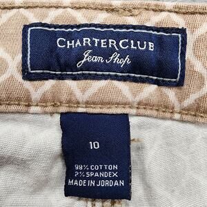 Charter Club Jeans Womens 10 Tan White Geometric Lexington Straight Leg Stretch Cotton Casual Preppy Academia