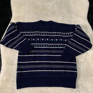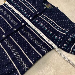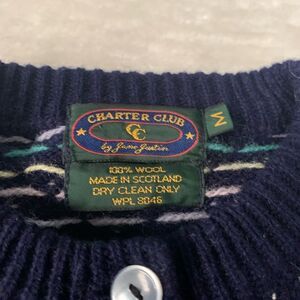 Charter Club Justin Womens Medium Blue Button Down Cardigan Wool Floral Sweater