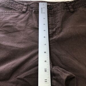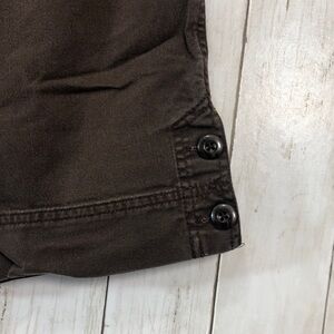 Brown, zipper and button closure, 4 pockets, double button on outer hem, belt loops, colors may vary due to lighting, good used condition, size: 10P