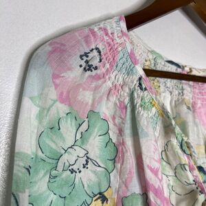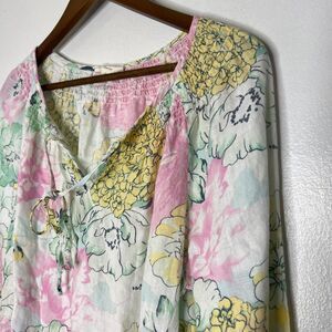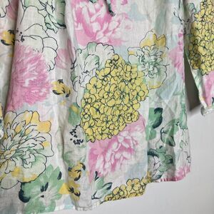 Charter Club L 100% Linen Floral Half‑Sleeve Blouse Casual Summer Breezy
