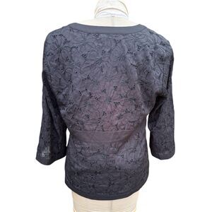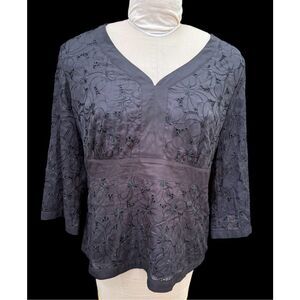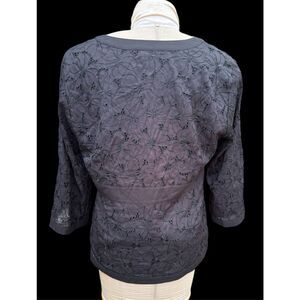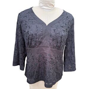 Charter Club Lace Overlay V-Neck Blouse Bell Sleeves Black Sz. 16