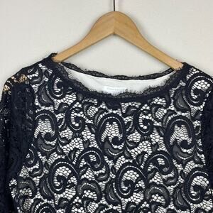 Charter Club Lace Top Black Ivory Lined Petite PL Whimsigoth Fairy Witchy