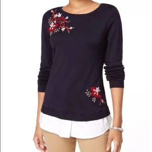 Charter Club Layered Look Sweater Blue Fall Winter Long Sleeve New Floral XL
