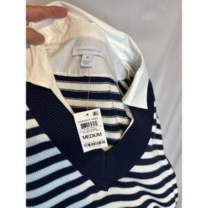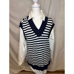 Charter Club Layered Sweater Striped Vest Shirt Intrepid Blue Combo Womens